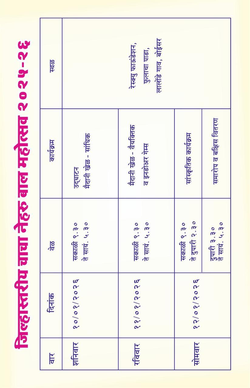 जिल्हास्तरीय चाचा नेहरू बाल महोत्सव १०/०१/२०२६ ते १२/०१/२०२६ दरम्यान